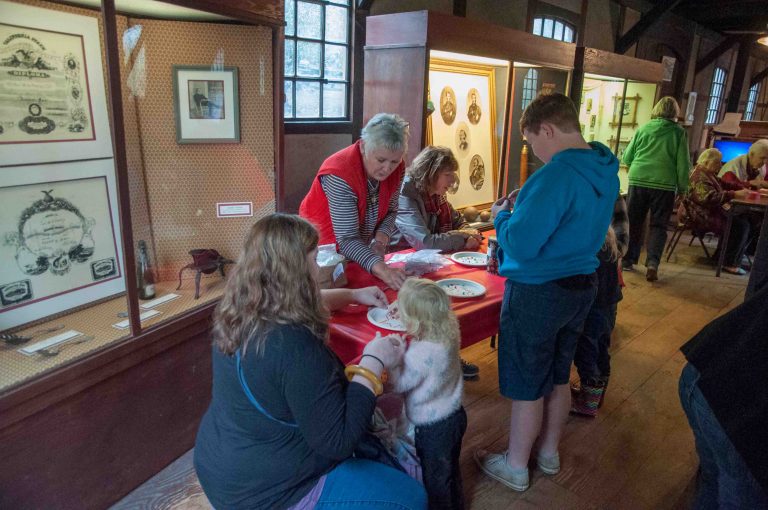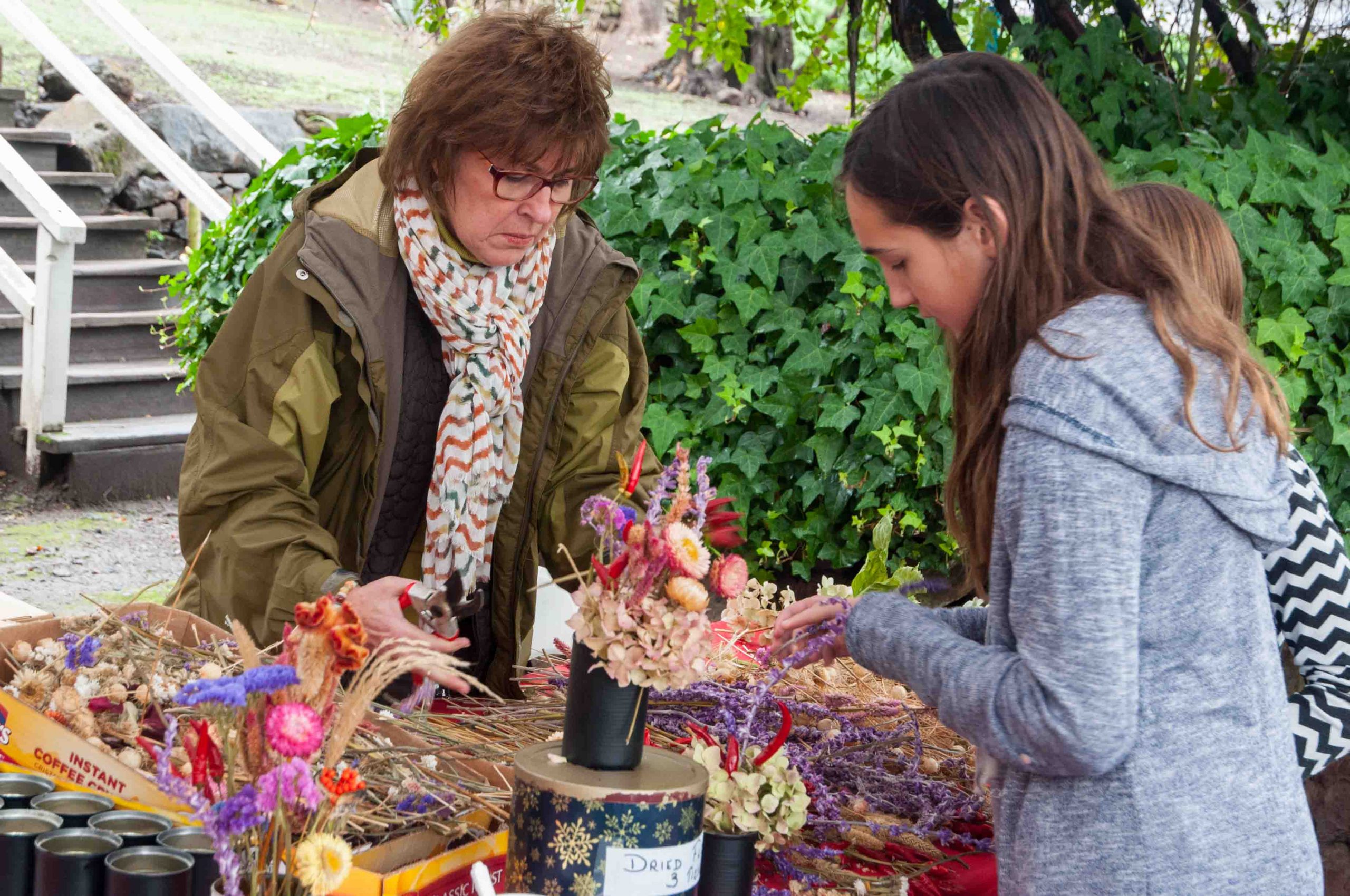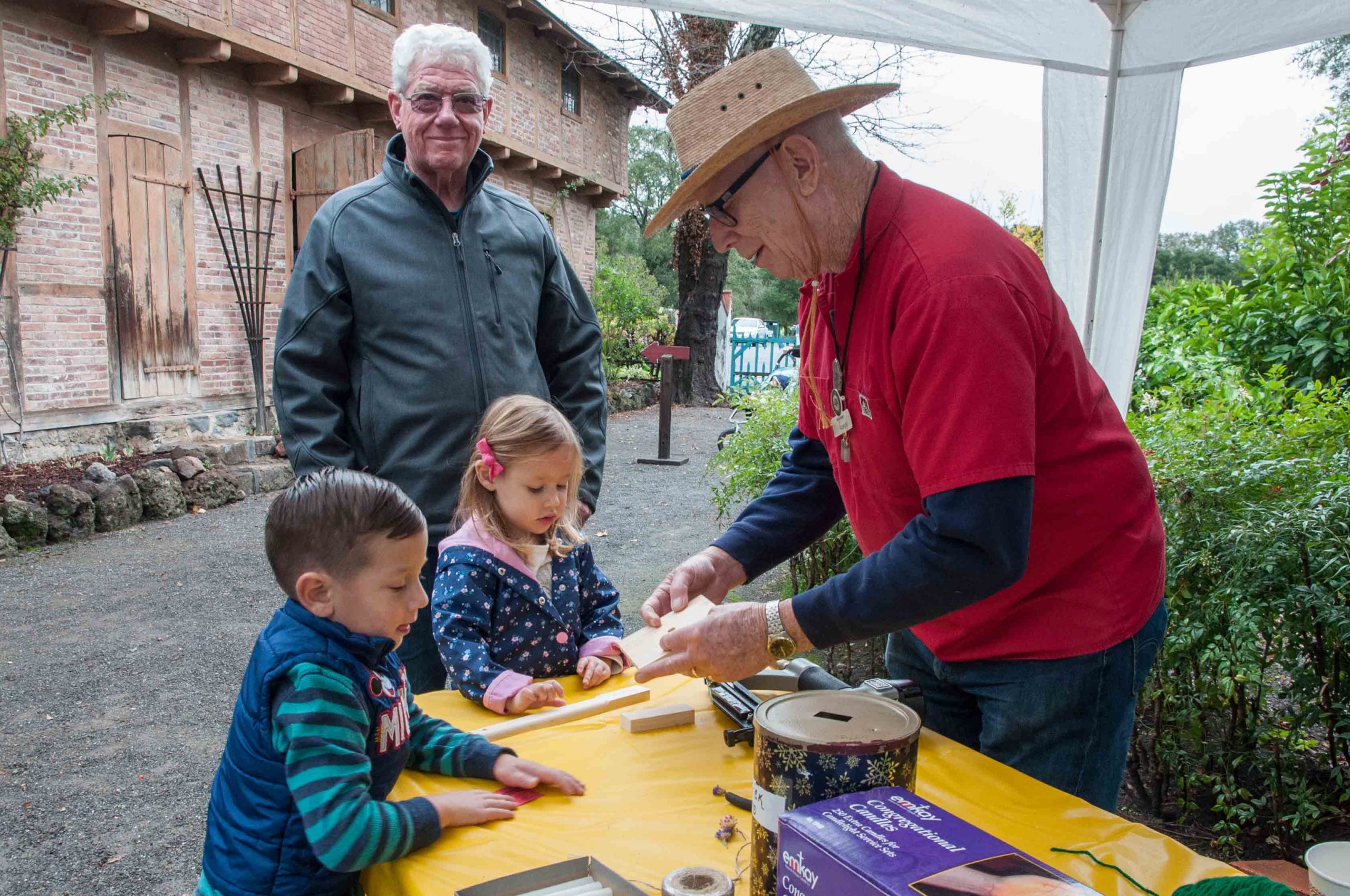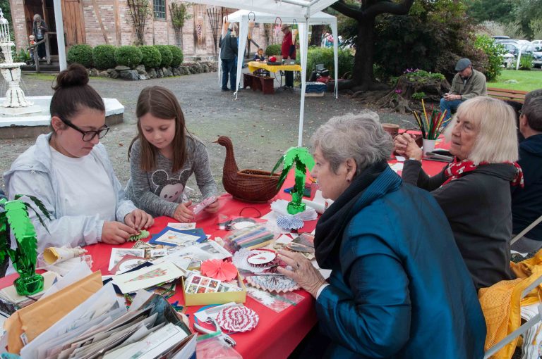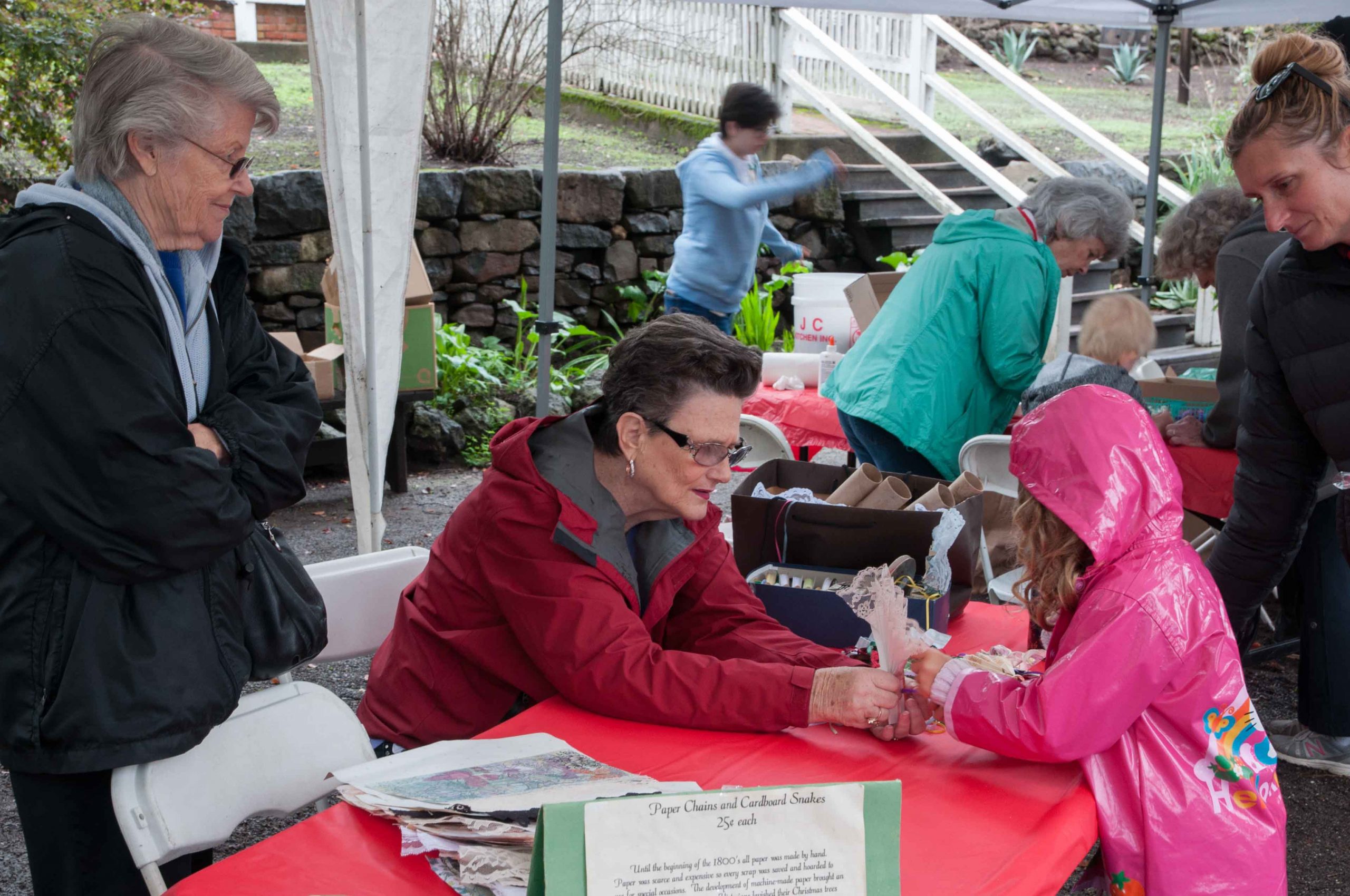 The day started with some heavy showers but by the time the workshop opened at 11AM the rain had stopped and the hard-working volunteers who had set out the tables and arranged the crafts materials breathed a collective sigh of relief. This year the event was dedicated to the memory of Kay Archibald, a long time volunteer. The Victorian Christmas Craft Workshop has become part of the fabric of Sonoma, some parents who attended remembered when they had come years ago. We had a good turnout and many happy faces of children proudly showing what they had made.
