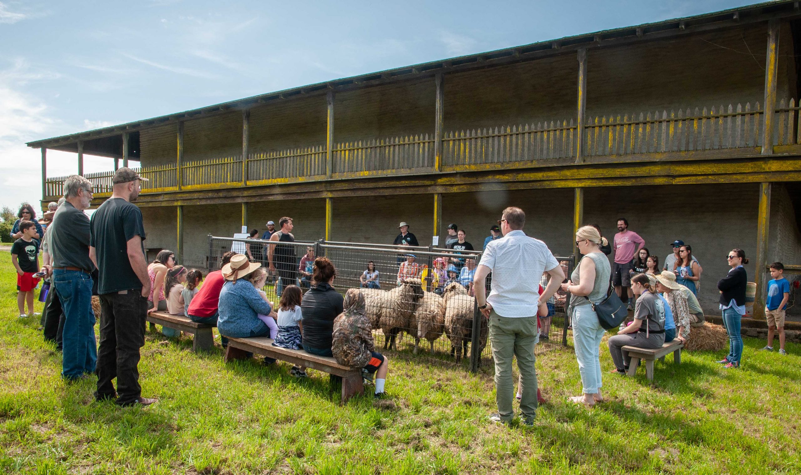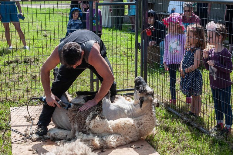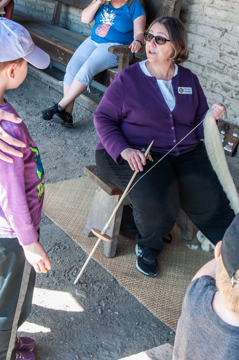 A sunny day brought families with eager children to the Petaluma Adobe for our annual sheep shearing event. A new feature this year was a petting enclosure where a large, docile pig and several small goats wandered around to the delight of small children.