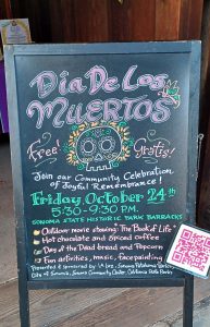 No one went hungry or thirsty during this event! Gerado, with the Sonoma Community Center, provided delicious pizza made on the spot. The Granito Café served flavorful Mexican hot chocolate and spiced coffee. There were also fan favorites, Pan de Muerto (Day of the Dead bread) and popcorn.